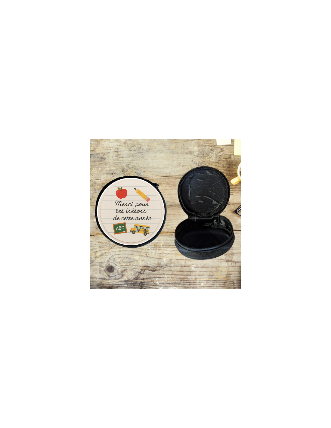 Offrez un cadeau à la fois pratique, mignon et rempli d’attention avec ce porte-monnaie rond, spécialement conçu pour remercier ceux et celles qui prennent soin de nos enfants chaque jour. Que ce soit pour une maîtresse bienveillante, un maître exceptionnel, une ATSEM dévouée ou une nounou en or, ce petit accessoire est idéal à glisser dans un sac... et dans le cœur 💕